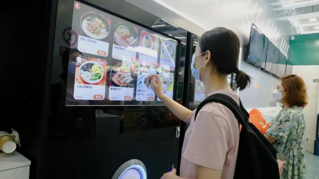 該餐廳24小時營業,無需服務員輪班值守,智能點餐系統簡單易用,旅客只需要根據提示點幾下屏幕、掃下碼,然后稍等幾分鐘,就能享受到它做好的美食了。