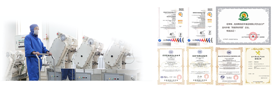 青島遠見集團斥資上億元打造兩大食品加工基地,年生產總量達萬噸以上。除通過ISO、HACCP雙體系認證外,還成為了業(yè)內為數不多具備出口食品生產企業(yè)資質、通過全球食品安全標準(BRC)A級認證并獲得“三同”證書的企業(yè)之一。產品暢銷國內外,出口北美、歐盟等海外市場,得到了全球消費者的一致信賴。