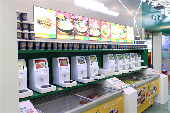 美鄰小廚智慧餐飲項目,通過結(jié)合了先進物聯(lián)網(wǎng)技術(shù)的智能烹飪設(shè)備,搭配與設(shè)備配套的高品質(zhì)、標(biāo)準(zhǔn)化預(yù)制菜品,顧客只需挑選產(chǎn)品,智能設(shè)備對美食產(chǎn)品進行識別后,便會自動開始烹飪。只需3-5分鐘,便可以享受到一頓現(xiàn)煮現(xiàn)烹的美味。