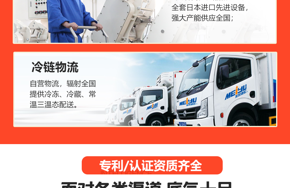 3大現(xiàn)代化食品加工工廠全套日本進口先進設(shè)備,強大產(chǎn)能供應(yīng)全國;